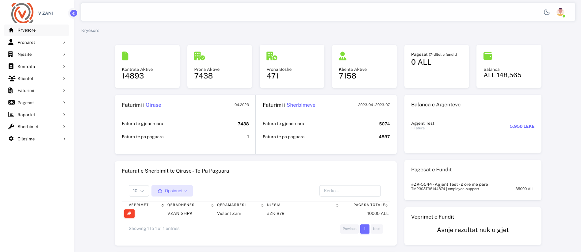 Disa nga rolet jane: menaxheri, punonjesit, agjentet(taksambledhes), pronaret, klientet, financa si dhe role dinamike te cilat gjenerohen sipas nevojes. Gjithashtu ne kete sherbim ju mund te kryeni gjenerimin e raporteve sipas nevojes.